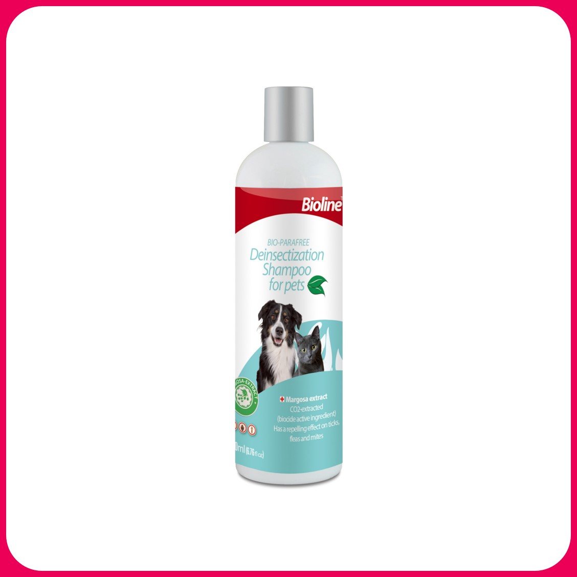 Bioline Bio-Parafree Deinsectization Shampoo is a gentle yet effective pet shampoo formulated to help repel fleas, ticks, and mites. Enriched with natural margosa extract, it cleans the coat while supporting skin health for both cats and dogs.