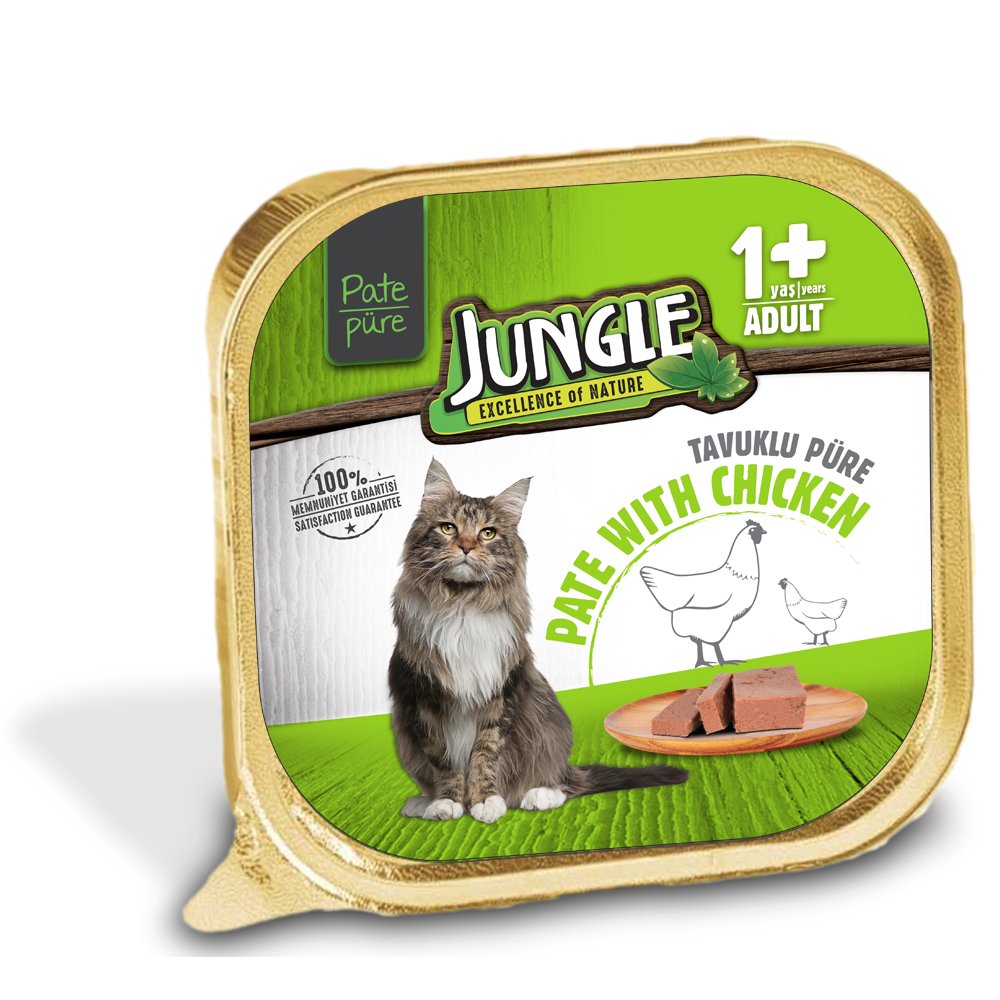Specially formulated for adult cats, Jungle Chicken Pate provides strong muscles, shiny fur, and balanced nutrition with its high protein content and vitamin and mineral support.